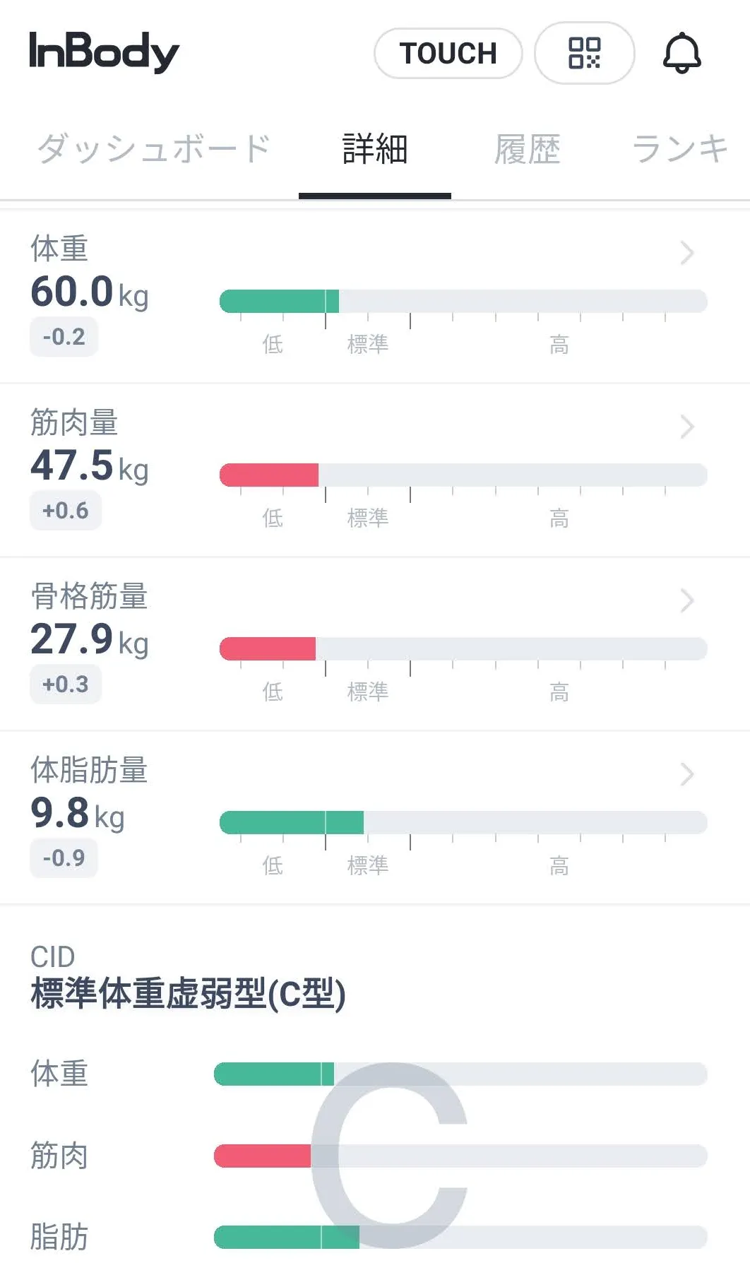 体重&骨格筋量の測定結果