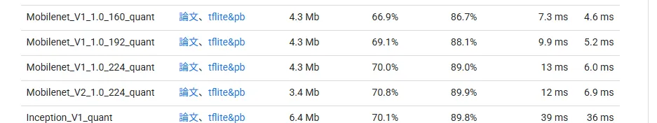 公式サイトにはV2の量子化済のMobileNetまでしか存在しない。
