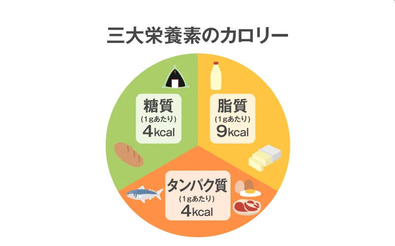 カロリー(エネルギー)は「タンパク質」「脂質」「炭水化物(糖質)」と「アルコール(必要栄養素ではない)」らしい。