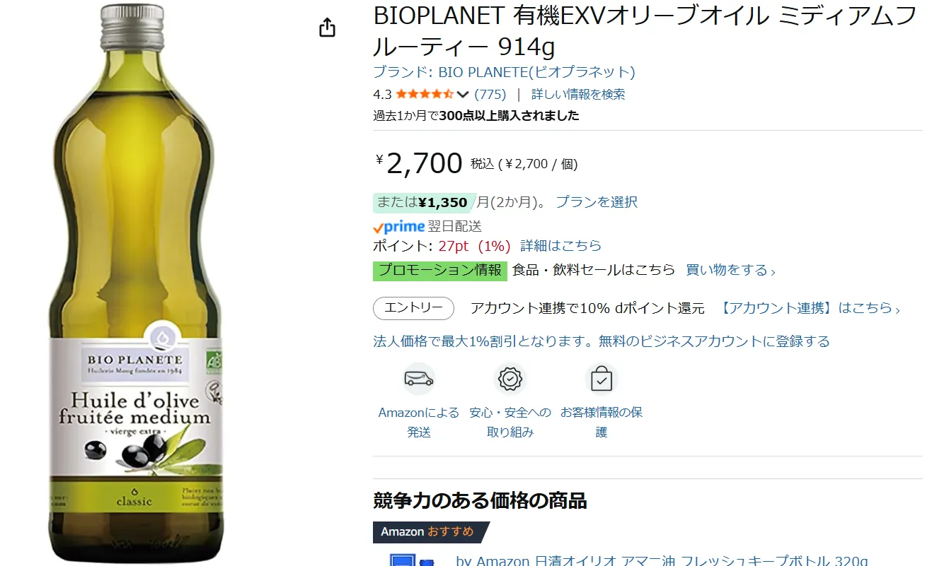 オリーブオイル調べてみるか。