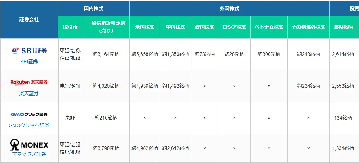 SBI証券の方が扱える銘柄数/取引証券数が多くて継続利用するならSBI証券が良かった……