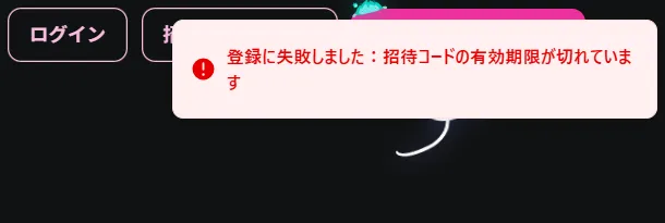 「OiiOii」は招待制。Xなどで「OiiOii 招待コード」などでコードを見つけてアカウント作成しようとしても、既に誰かに使われており次のようなエラーが出る。