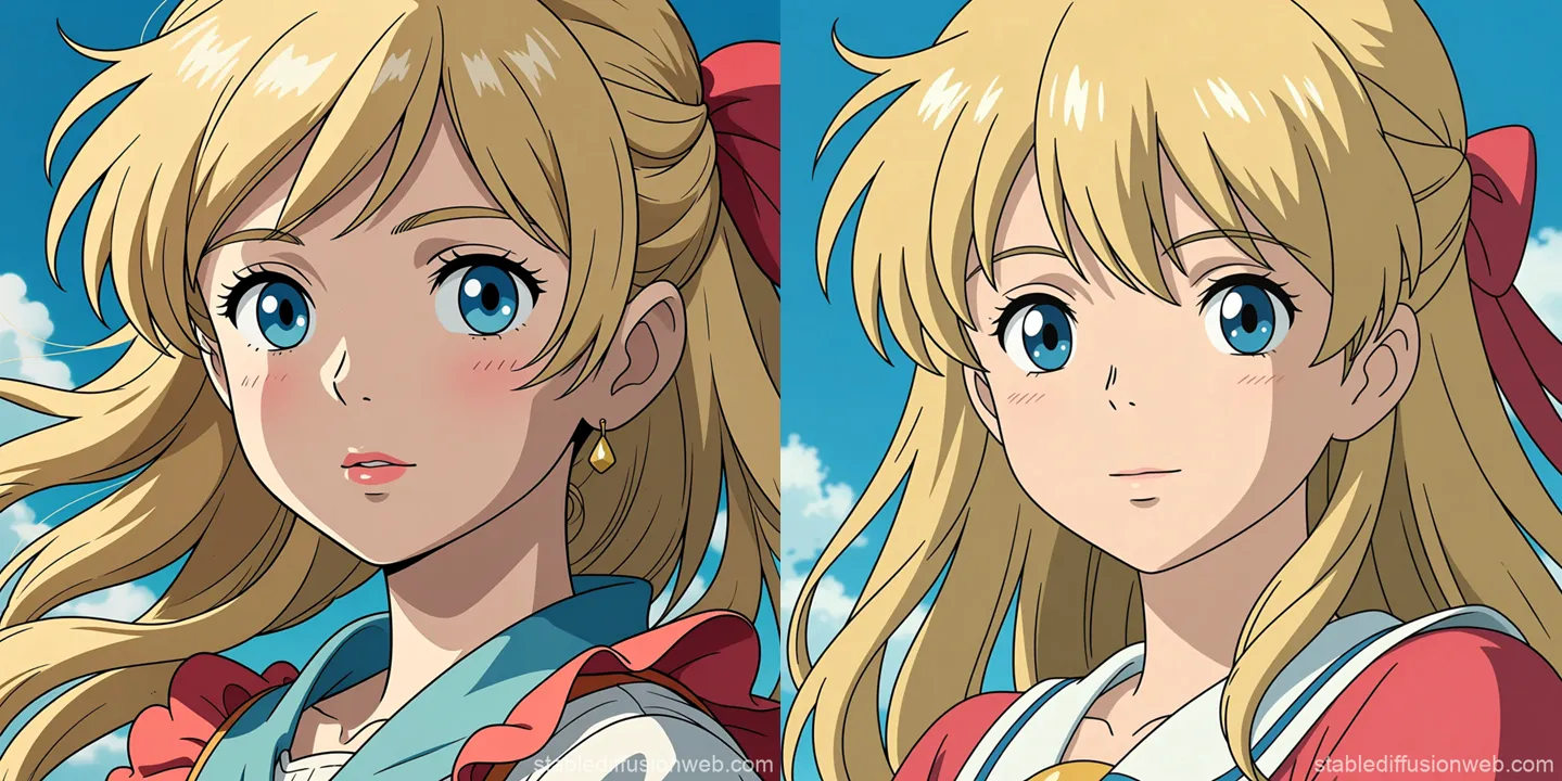 anime girl in Studio Ghibli style,blonde hair,blue eye
