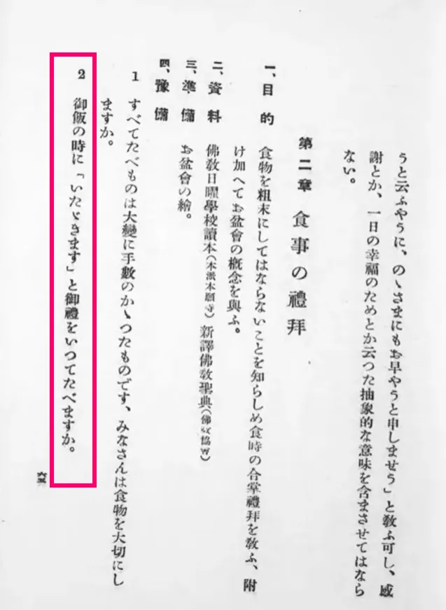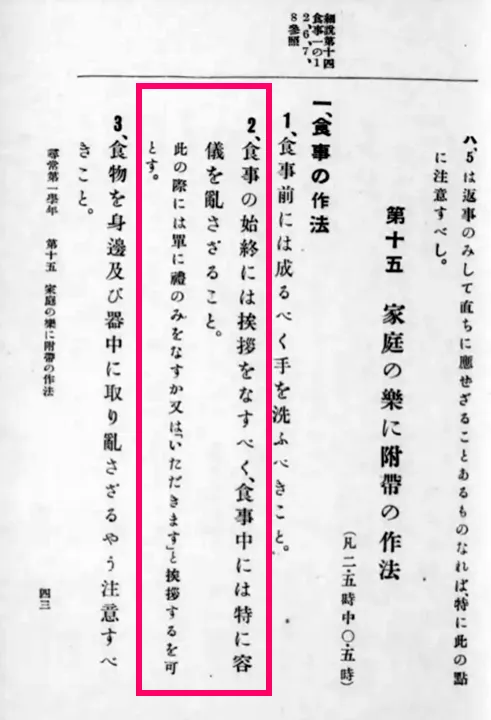 • 1934年(昭和9年) 「御飯はいただきますで始め、ごちそうさまで終わりましょう。」