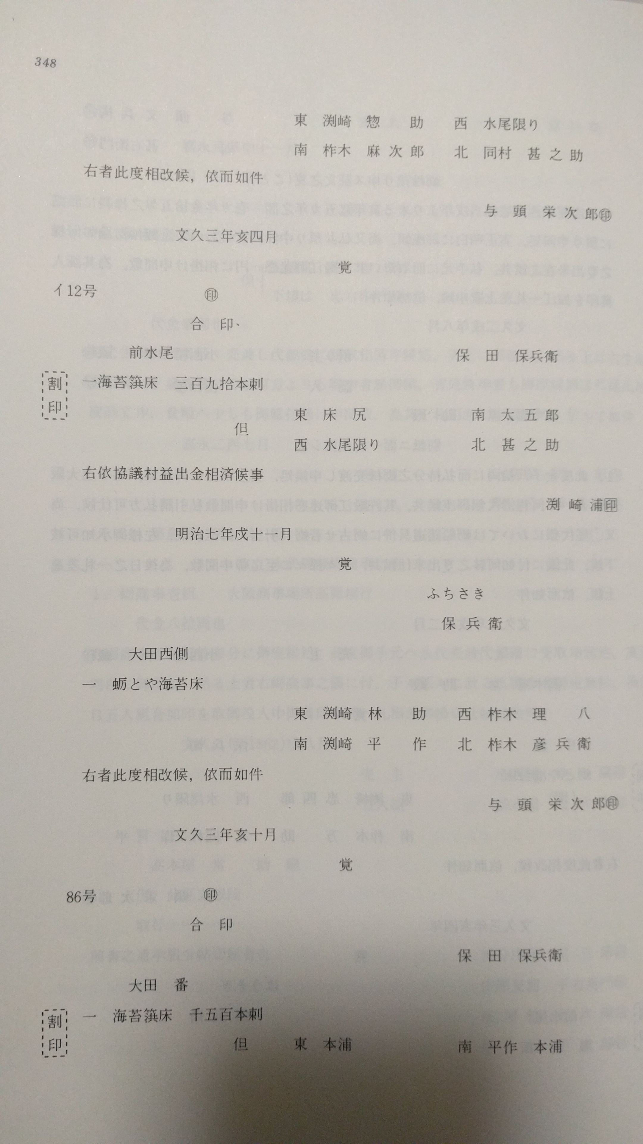 1862(文久2)年に「先・保兵衛(39歳)」「彦兵衛(28歳)」、1875(明治7)年「保田保兵衛(29歳)」が柞木・渕崎のカキ床、ノリ床の漁場所有権、営業権を譲渡しました(「広島太田川デルタの漁業史 第2輯」より)。