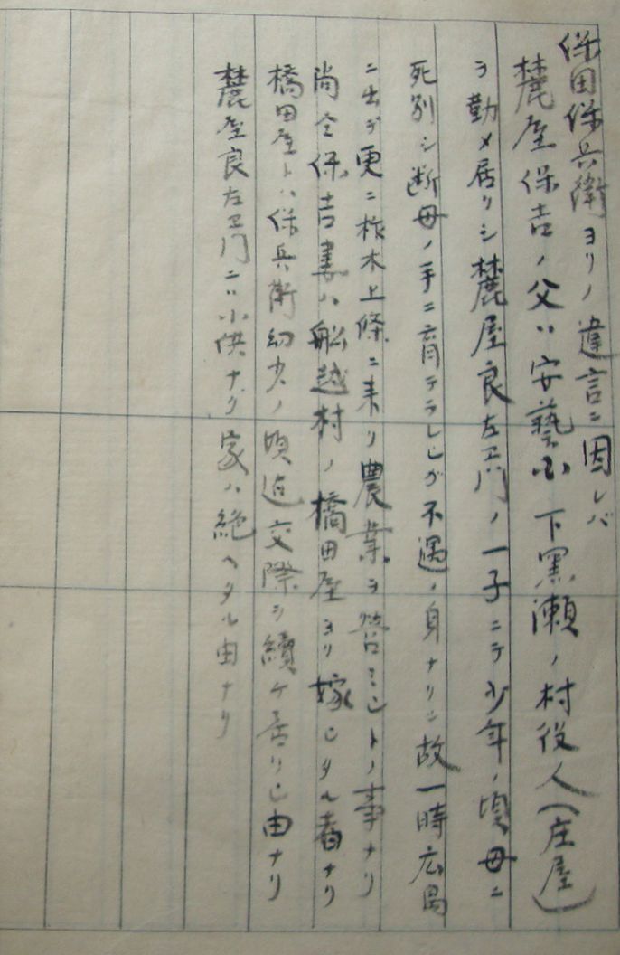 保吉の妻は船越村の橋田屋であり、橋田屋とはその後100年近く交流がありました(「代々年回表」より)。
